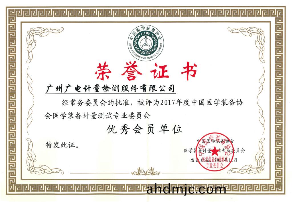 2017年度中國醫學裝備協會醫學裝備(bei)計(ji)量測試專業委員會優秀會員單位