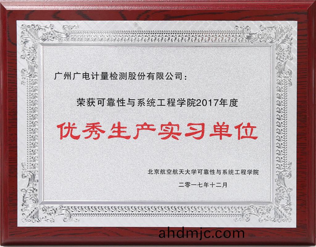 北京航天大學可靠性與係統工程學院2017年度優秀生産實習單(dan)位