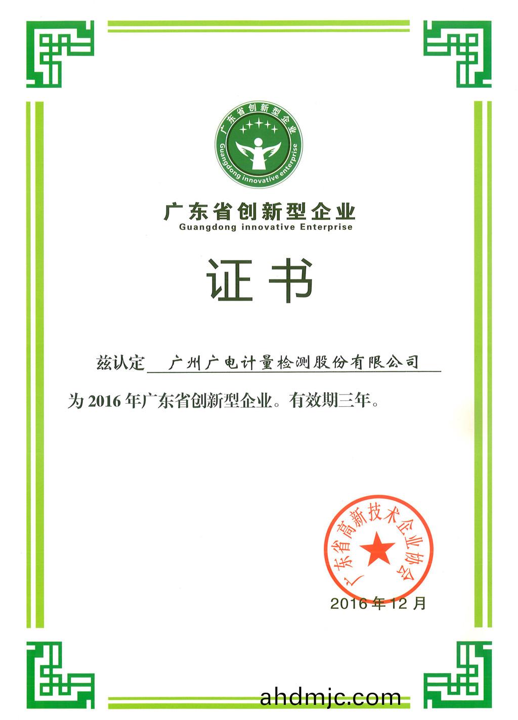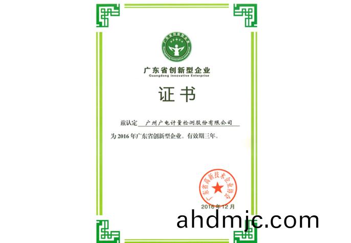2016年廣東省(sheng)創新型(xing)企業”資(zi)質證書