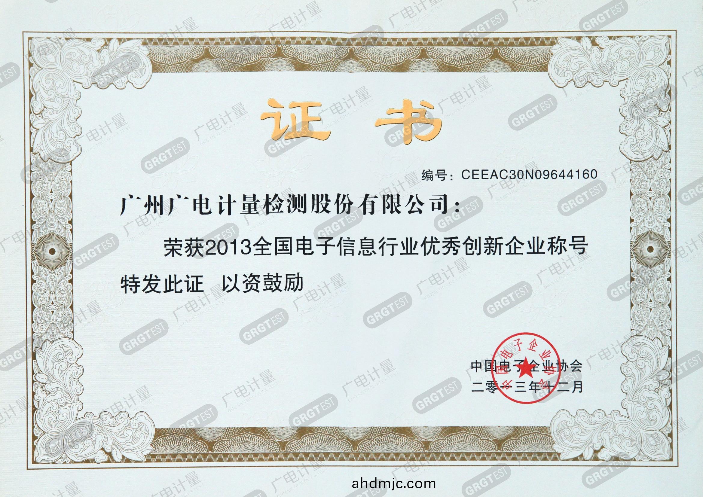 全國電子信息行業優秀(xiu)創新企業