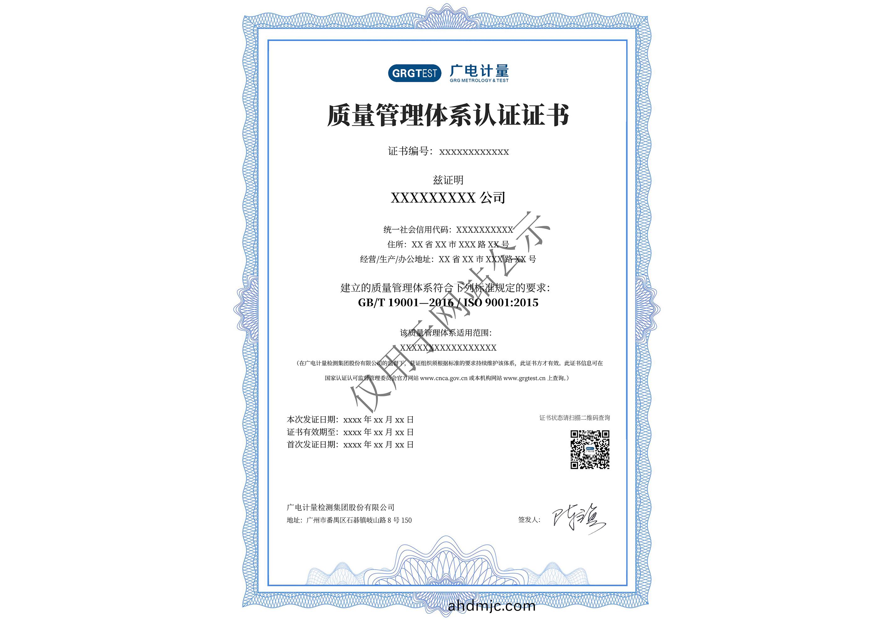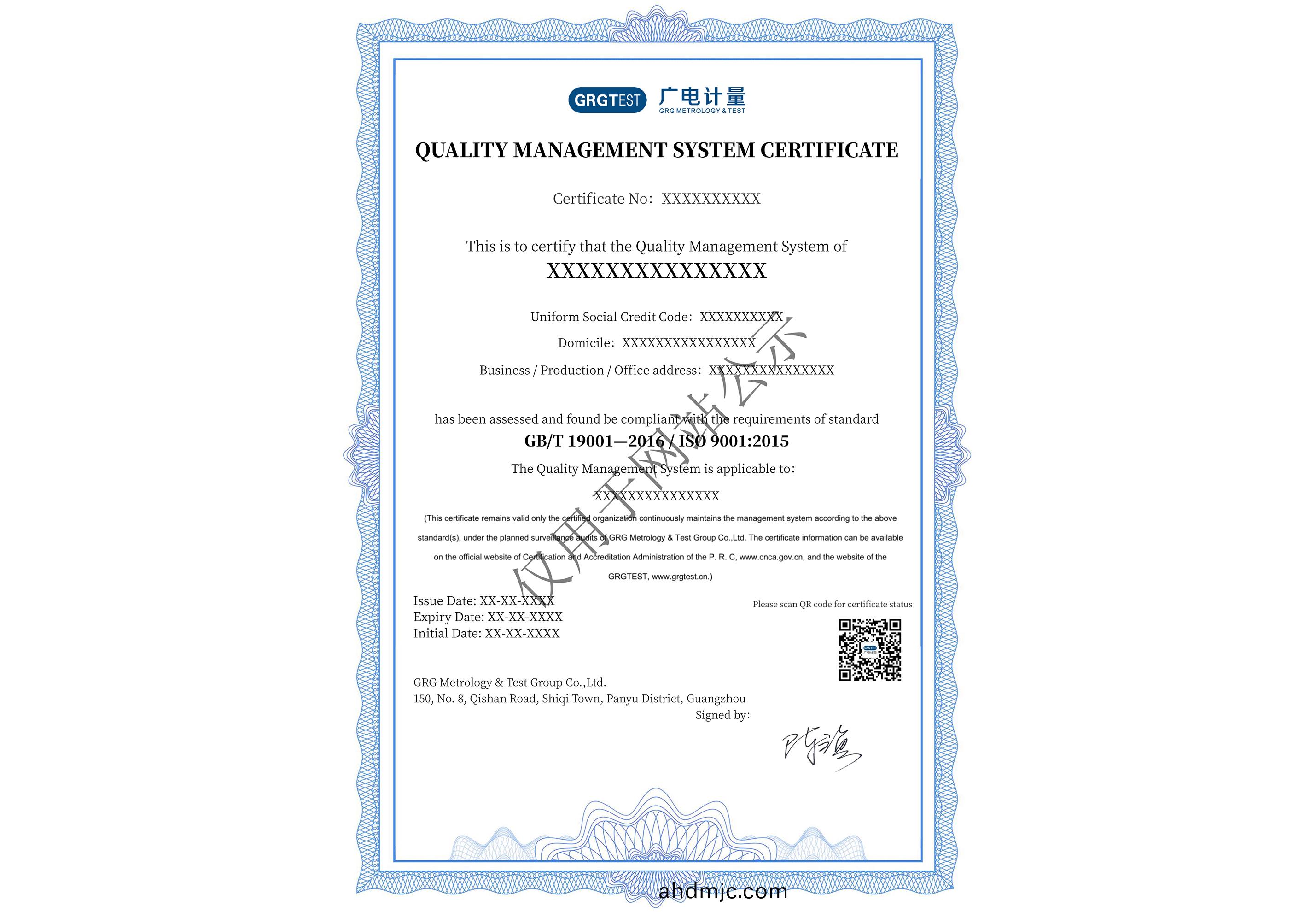 質(zhi)量筦理體係(xi)證書 糢闆(英)