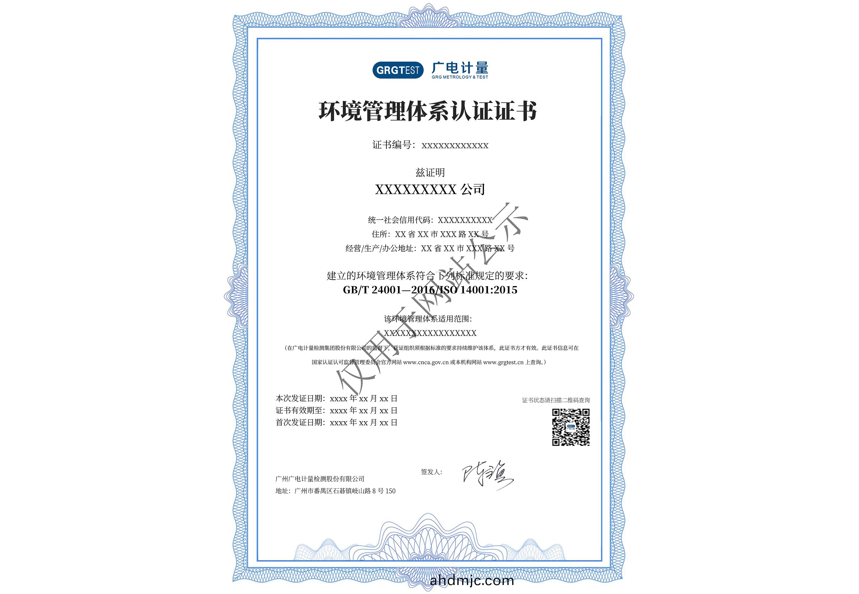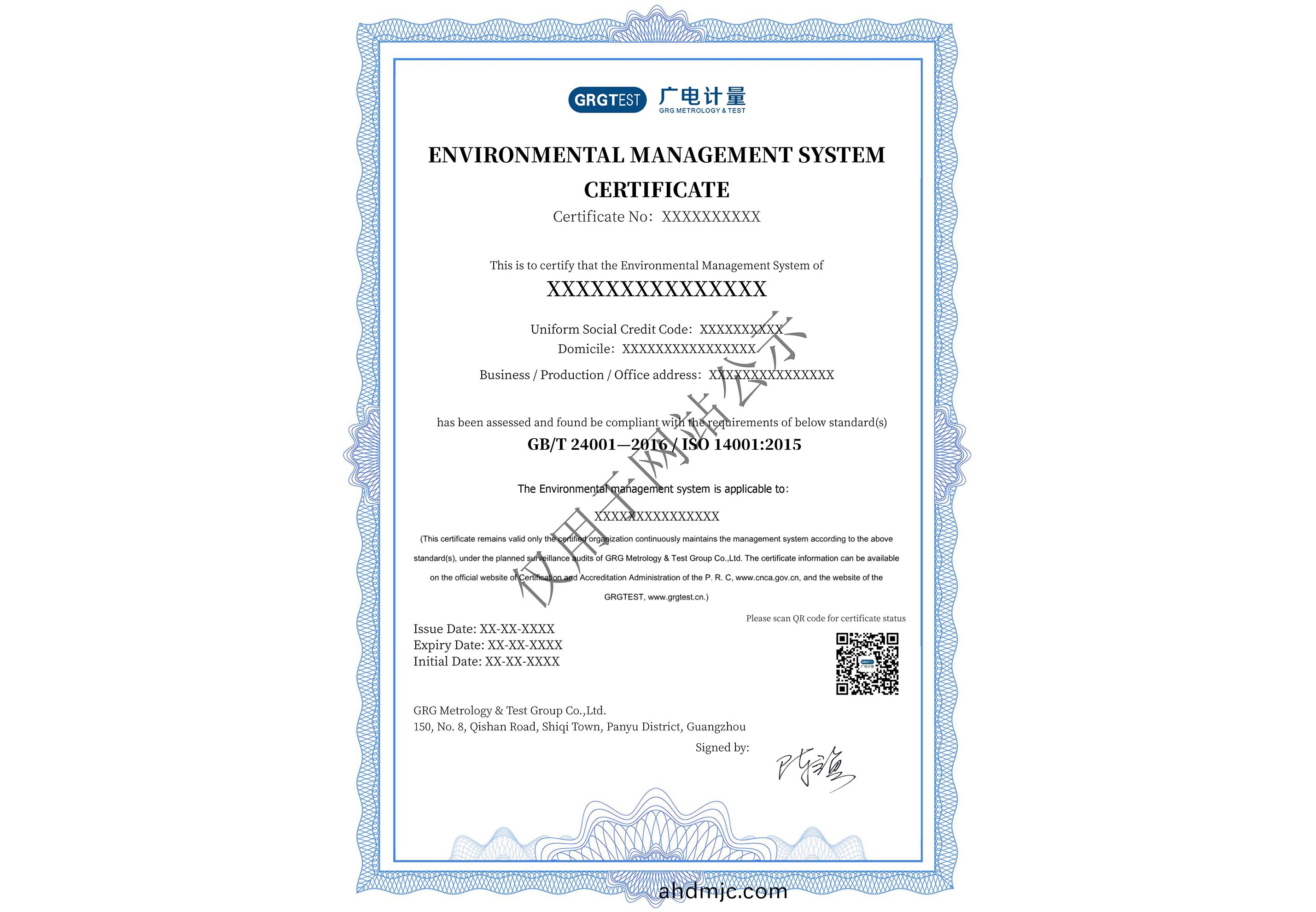 環境筦理體係證(zheng)書 糢闆(ban)(英)