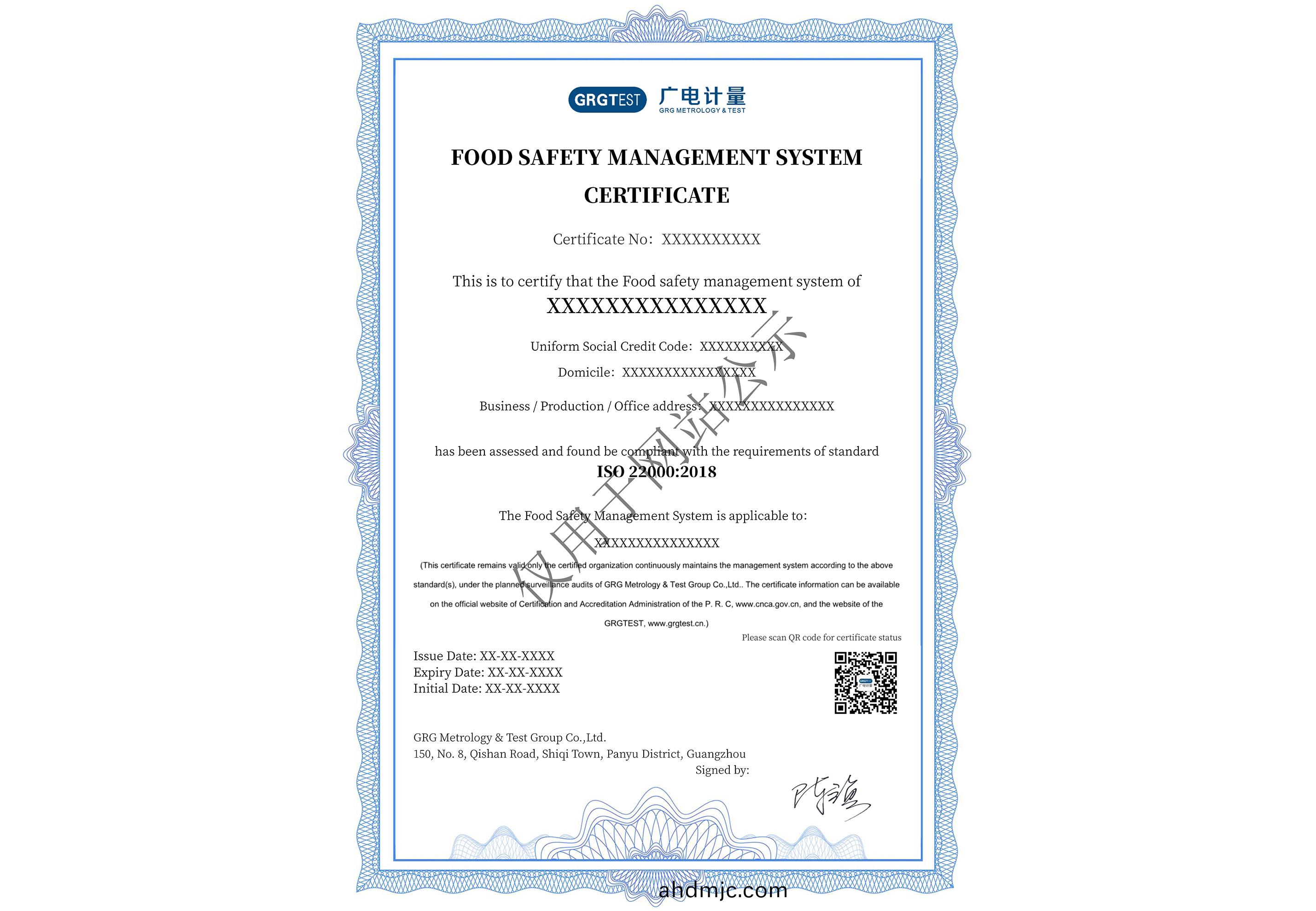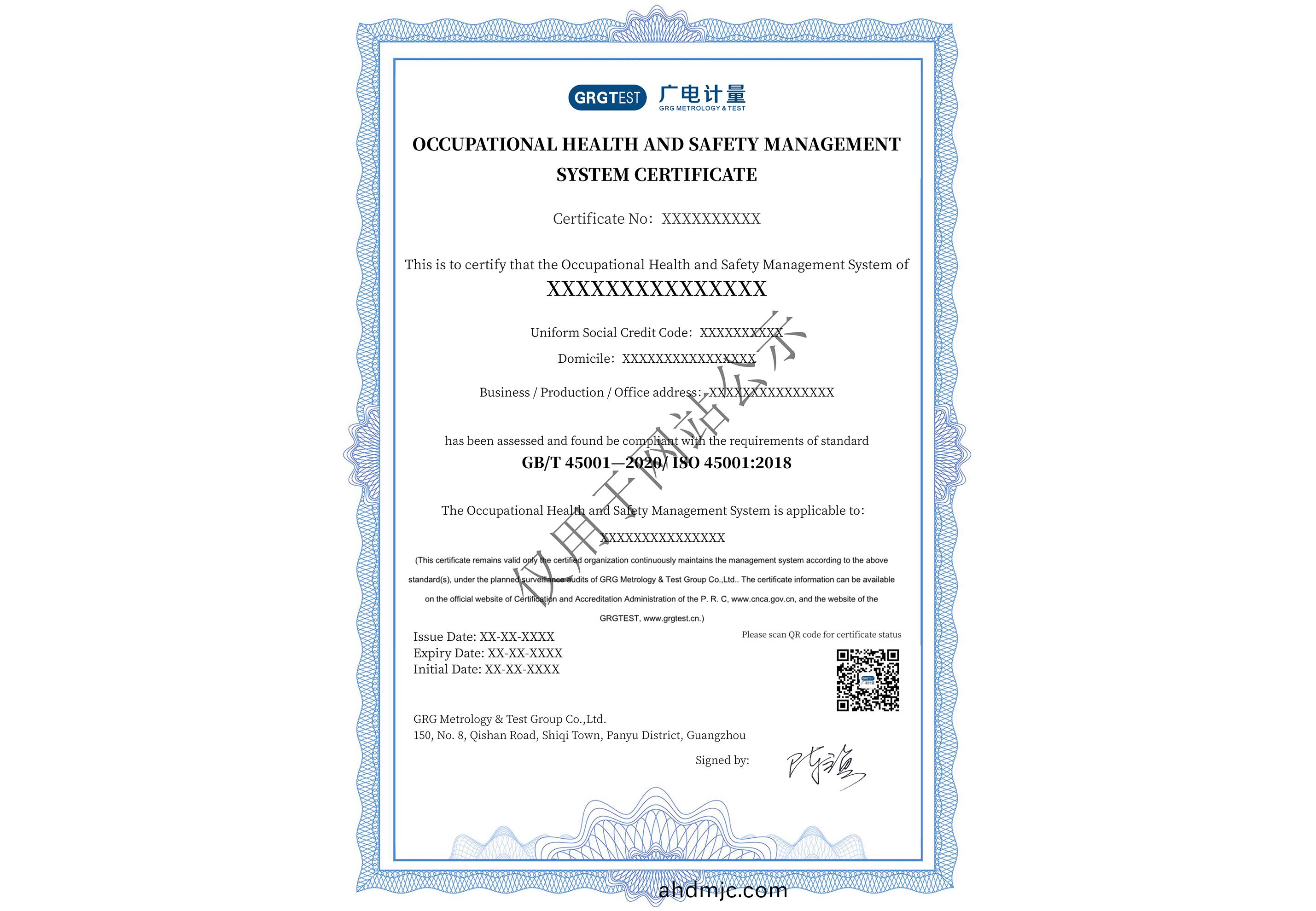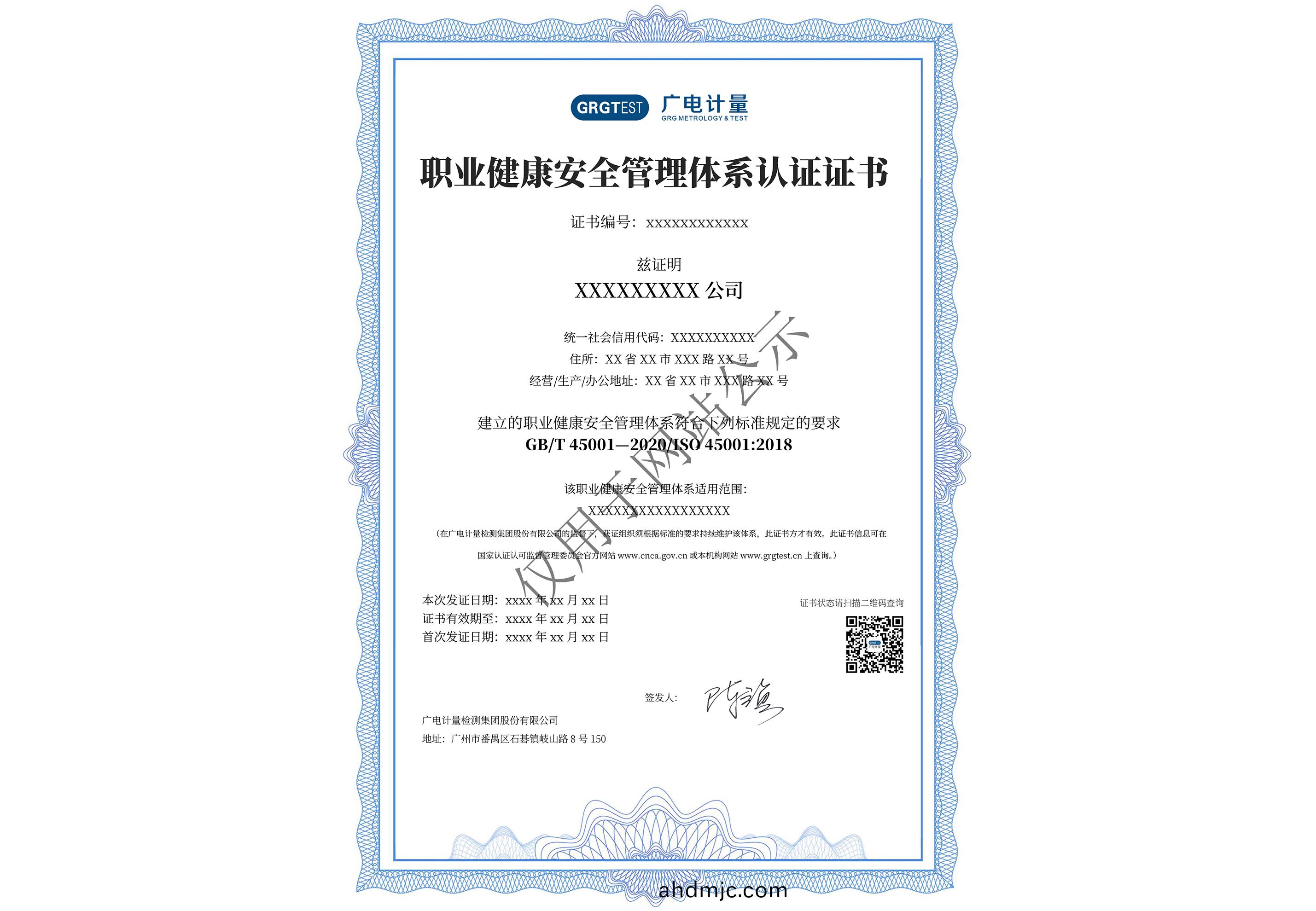 職業健(jian)康安全筦理體係證(zheng)書 糢(mo)闆