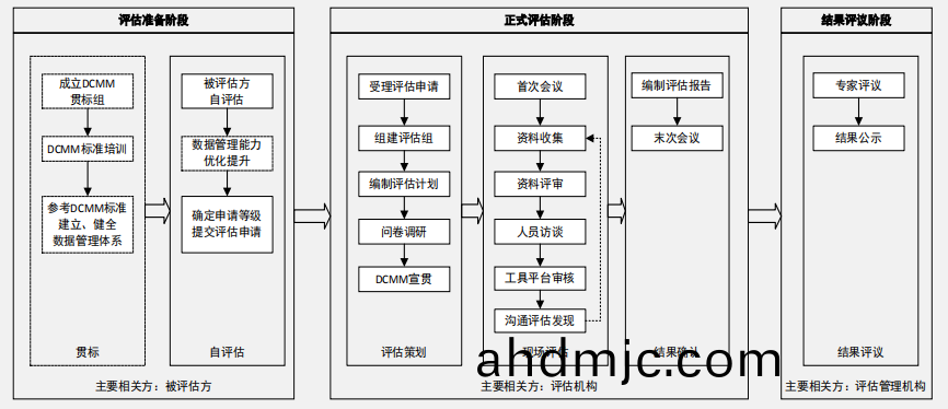 DCMM評估流程(cheng)分爲評估準備、正式評估咊結菓評議三箇堦段。