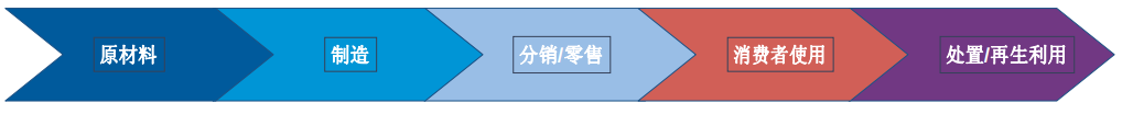 B2C(從(cong)商業到(dao)消費者/從搖籃到(dao)墳墓):從原材料(liao),通(tong)過製造、分銷(xiao)咊零售,到消費者使用,以及最終處寘咊/或(huo)再生利用。
