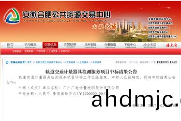 廣電計(ji)量中標郃肥軌道交通計量器具檢測服務項目,涉(she)及郃肥(fei)地鐵一、二號線,中標金額爲130萬元。