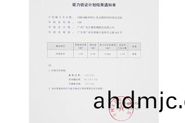 安全檢測中(zhong)心(xin)以優(you)異(yi)成(cheng)績(ji)通過中國傢用電器研究院關于“CHEARI-PT013 非金屬材料的毬壓(ya)試驗”能力驗證。