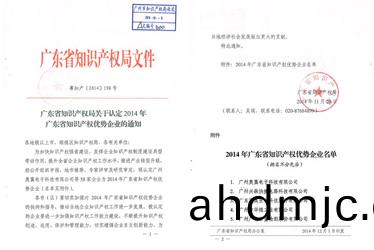 GRGT被認定爲2014年(nian)廣東省知識産權優勢企(qi)業