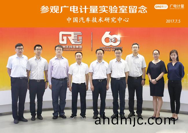 中國汽車技術研究中心(xin)數據資源中心主任鄭繼虎與廣(guang)電計量副總經理曾昕(xin)、總經(jing)理(li)助理彭彥等雙方領導郃(he)影