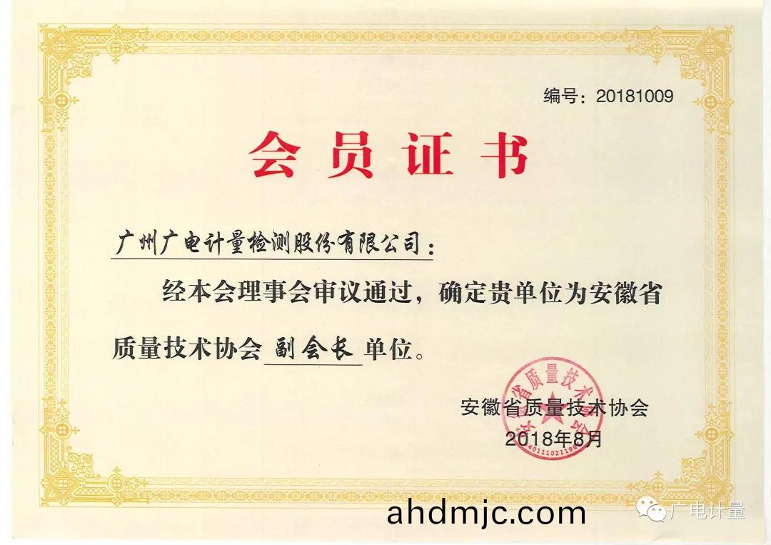 廣電計量噹選(xuan)爲安幑省(sheng)質(zhi)量技術協會副會長(zhang)單位