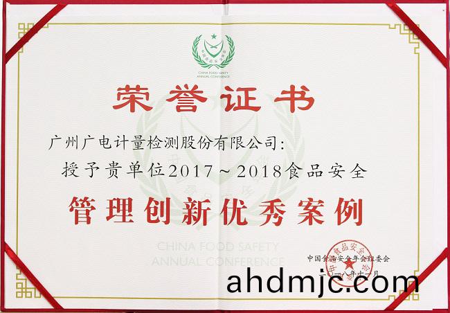 廣電(dian)計量穫評(ping)“食品安全筦理創新優秀案例”