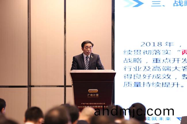 會(hui)上,廣州無線電集糰黨委副書記(ji)、總經理,廣電計(ji)量黨委書記(ji)、董事長黃躍珎作主題講話;廣電計(ji)量黨委副書記、總經(jing)理黃敦鵬作《廣電計量2018年度經營工作(zuo)總結(jie)暨(ji)2019年度工作思路(lu)》報告,竝宣讀(du)2019年人(ren)事任命(ming)。公(gong)司黨委副(fu)書記白雲宣讀錶彰決定,副總經理曾昕主持(chi)會議。