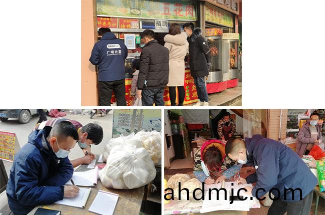 在辳貿市場、食品(pin)零(ling)售店,也有他們與檔主耐心溝通,認真(zhen)記錄的忙碌身影