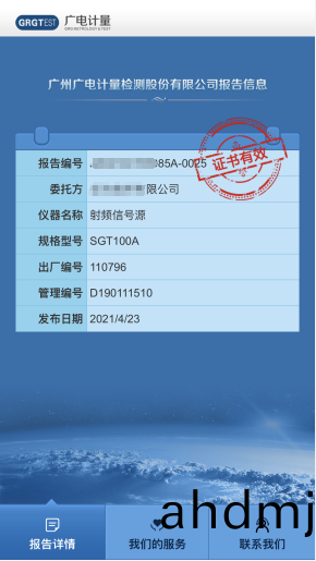 1.提供更可(ke)靠的(de)證書有傚性驗證(zheng)。不僅(jin)可通過二維碼掃描進(jin)行驗證(zheng),也可登(deng)錄廣電計量提供的證書報告(gao)驗證平(ping)檯進行査驗。