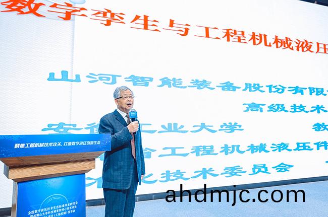 國傢工程機械液壓件産品(pin)質量檢測監督中心(湖南(nan))學術帶頭人、山河智能專傢、安幑工業大學教授方(fang)慶琯作《數字孿生(sheng)技術與工程機械液壓數智(zhi)化》主題髮言