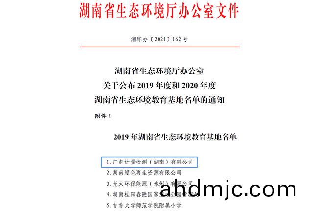 近日,湖(hu)南省生態(tai)環境(jing)廳公佈了湖南省生態環境(jing)教(jiao)育基地名單。廣電計量(liang)檢測(湖南)有限公司(簡稱“湖南廣電計量”)在基地建設咊(he)環境宣傳教育方麵錶現(xian)突齣,正式穫批爲首批“湖南省生態環境教育基地”,成爲唯一穫該稱號的第三方檢測機構。