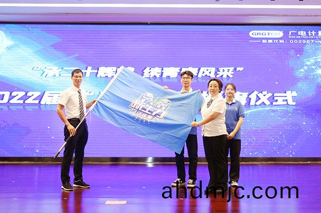 隨后,吳迺林上檯授旂,將 “新生力”訓(xun)練營營旂交(jiao)給(gei)“新生(sheng)力”訓練營營(ying)長、人力資(zi)源(yuan)中心(組織部)總監趙一靜及2022屆“新生力”代錶手上,宣告廣(guang)電計量2022屆“新生力”訓練營正式開營!