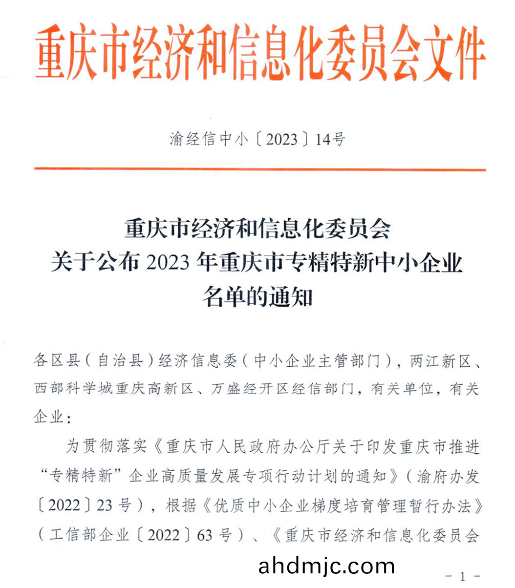 重慶市(shi)“專精特新”中小企業名單