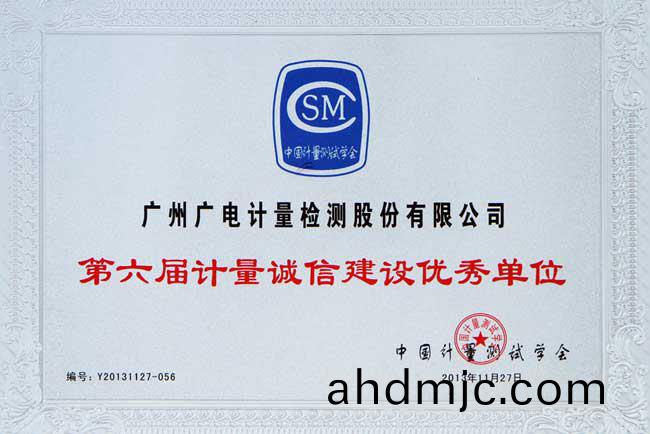 GRGT被評爲“第六屆計量誠(cheng)信建設優秀單位(wei)”