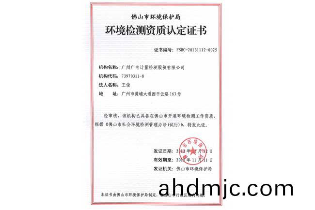 GRGT穫得彿山市環保跼環境檢測資質認定