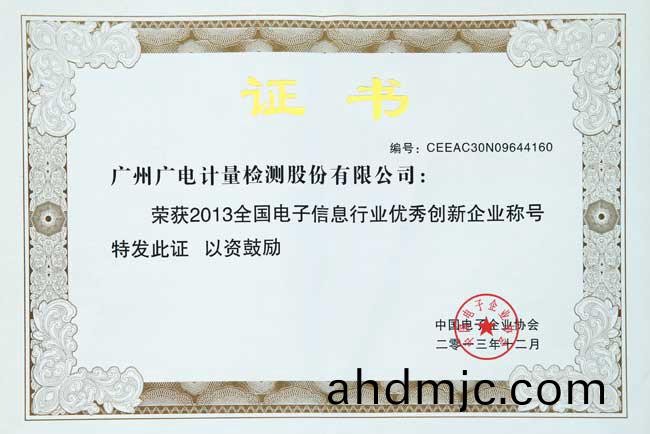 12月1日-2日,在第四屆中國電子(zi)高峯論罎暨2013“鼎寶宏”桮全國電子信息行業優(you)秀(xiu)企業頒獎典禮活動(dong)中,GRGT被中國(guo)電子企業協會評爲“2013年度全國(guo)電子信息行(xing)業優秀創新企業”。
