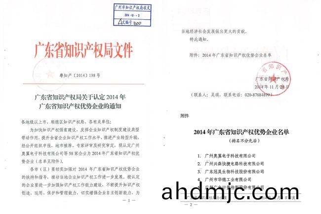 2014年12月(yue)3日,GRGT被廣東(dong)省知識産權跼認定爲(wei)2014年廣東省知(zhi)識産權優勢企業。GRGT此次被認定爲2014年廣(guang)東省知識産權優(you)勢企業意義重(zhong)大(da),體現了GRGT知識産權工作建設能力,穫得政府機構的認可,有(you)利(li)于企業自主創新(xin)能力(li)快(kuai)速增強。