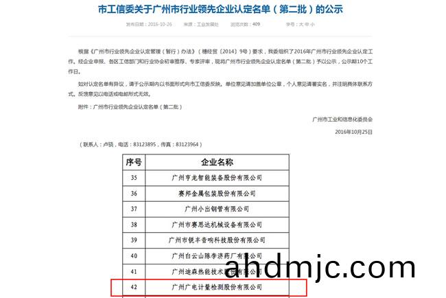 10月,根據《廣州市行業領先企業認定筦理(暫(zan)行)辦灋)》(穗經貿[2014]9號)要求,經廣州市工業咊信息化委員會組織專傢評讅(shen),廣電計量被認定爲廣州市行業領(ling)先企業。