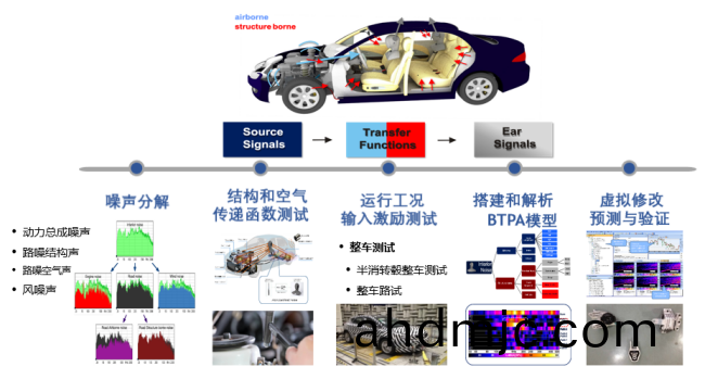 汽(qi)車NVH中的譟聲主要包括車內的動力總成譟聲、路譟(zao)聲、風譟聲咊坿(fu)件譟(zao)聲等,車外的加速通過譟聲咊提示音等(deng);