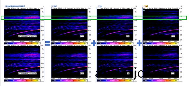 再次預測(ce)空調筦路對車內的貢獻(xian),特徴頻帶的共振帶明顯減弱: