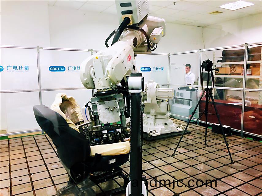 圖爲廣電(dian)計量實驗室裏,技術人員利用自動化設備,糢(mo)擬(ni)乗客上下車動(dong)作(zuo),測試汽車座椅耐磨性。郭(guo)靜(jing)原(yuan)攝