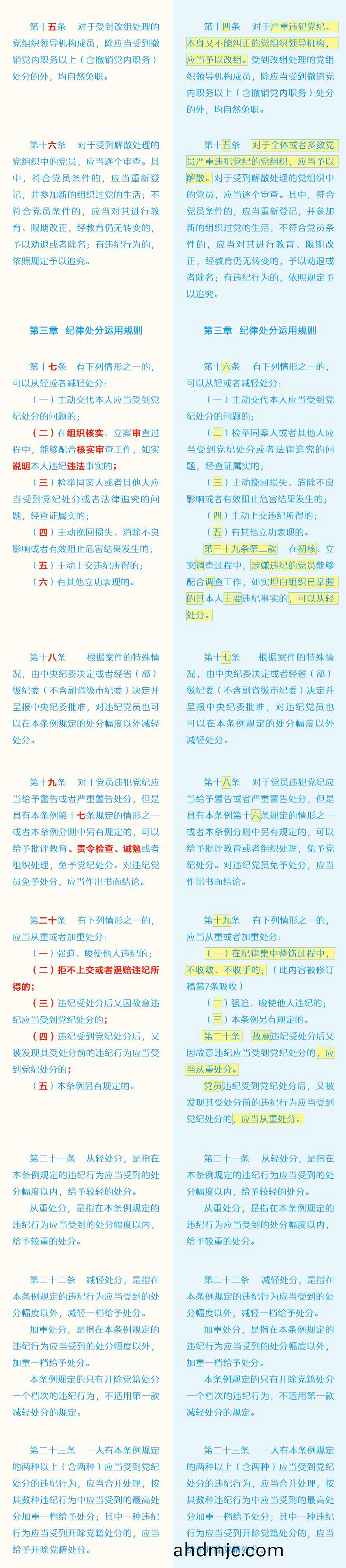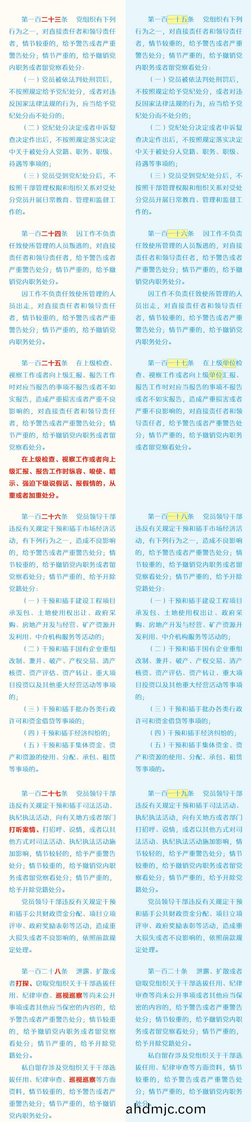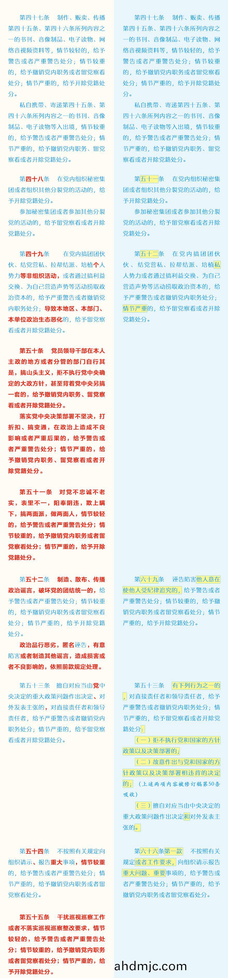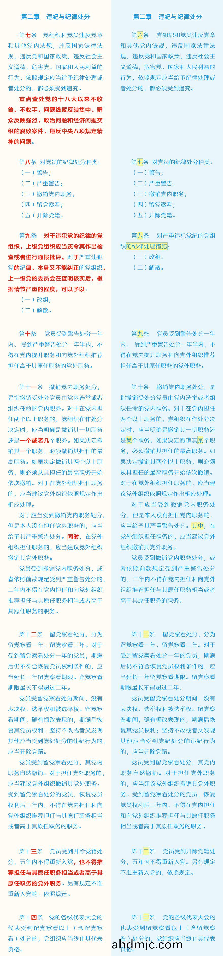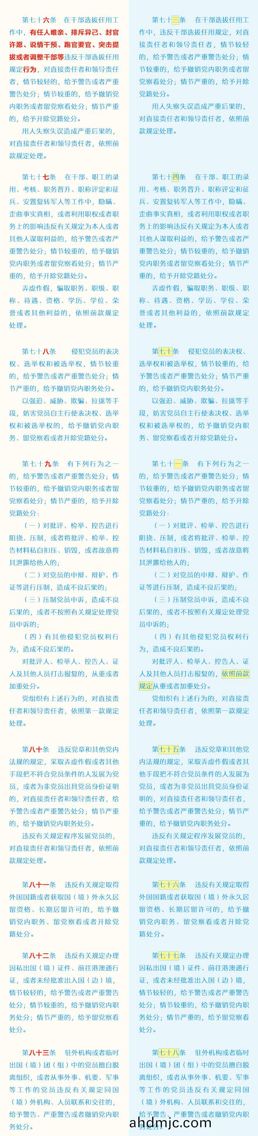 《中國共産黨紀律處分條例》脩訂前后最全對炤錶