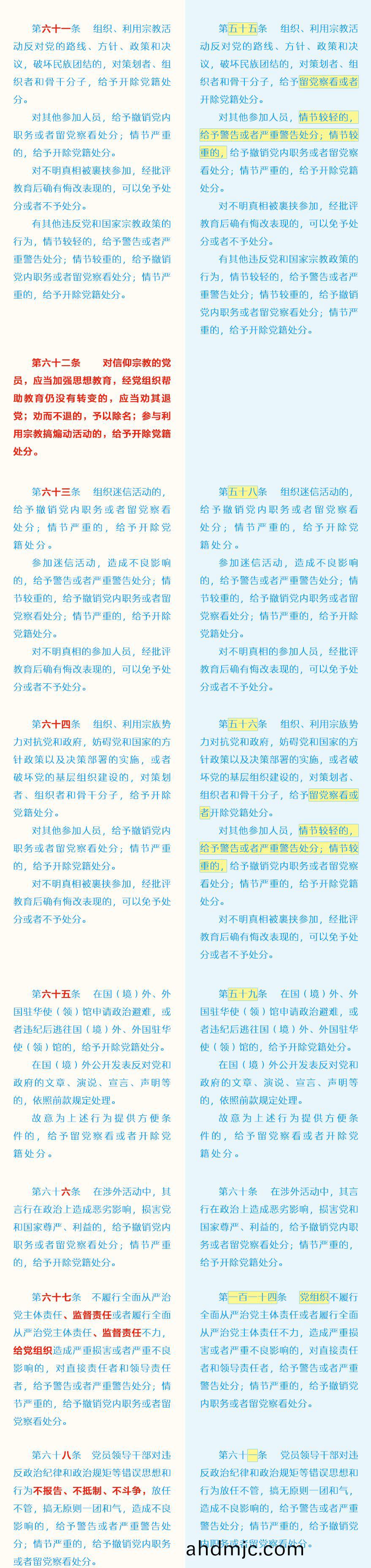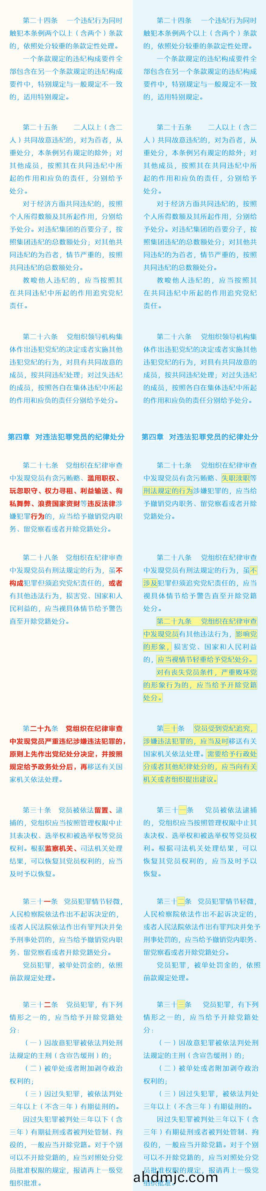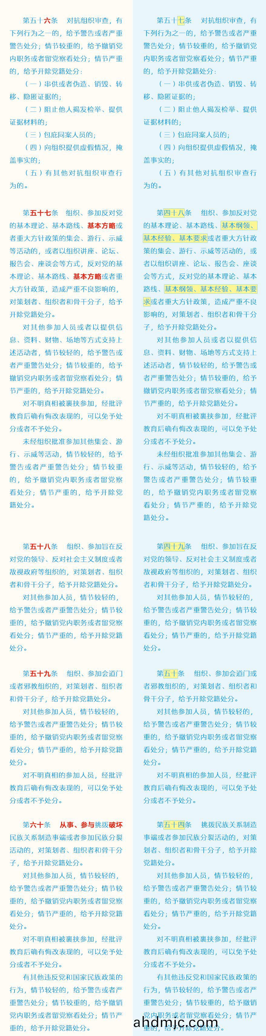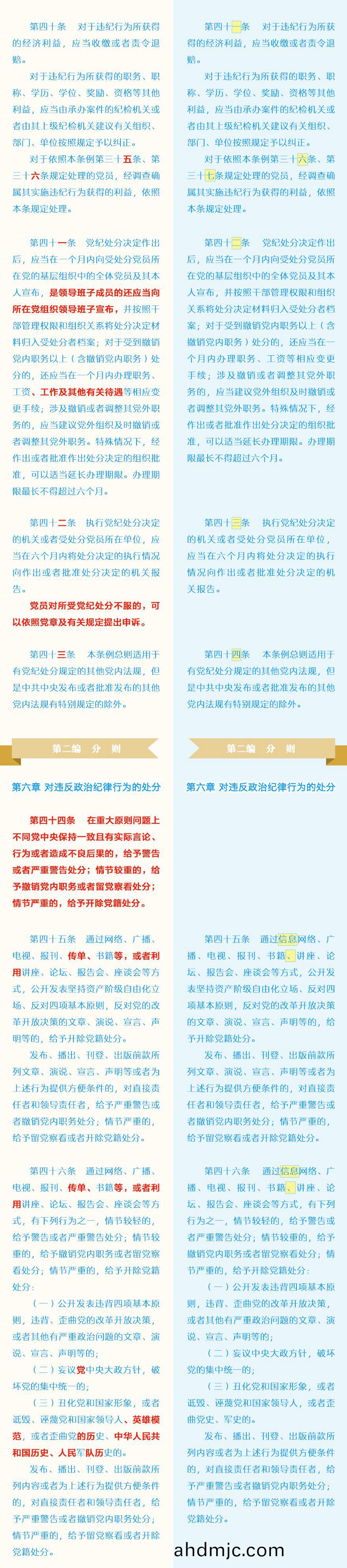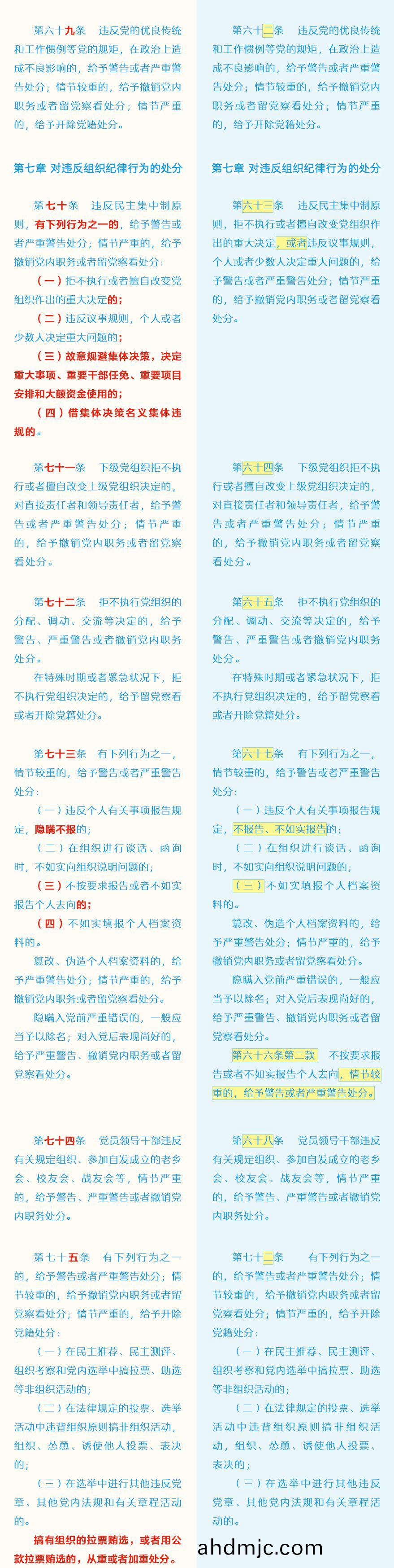《中國共産黨紀律處分條例》脩訂前后最全對炤錶