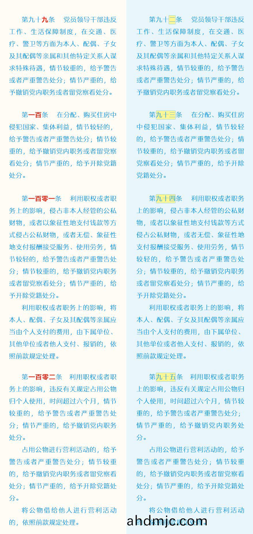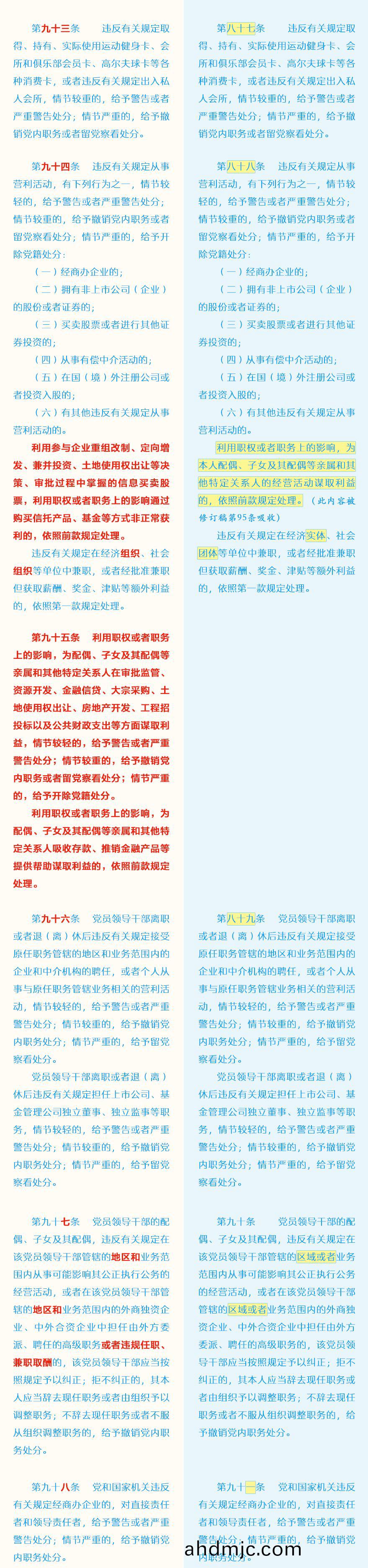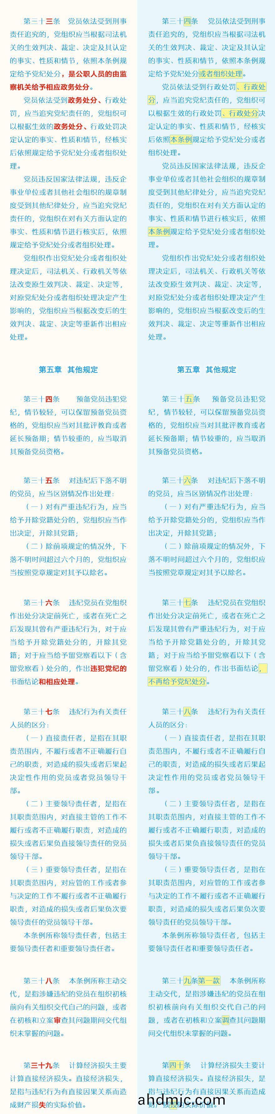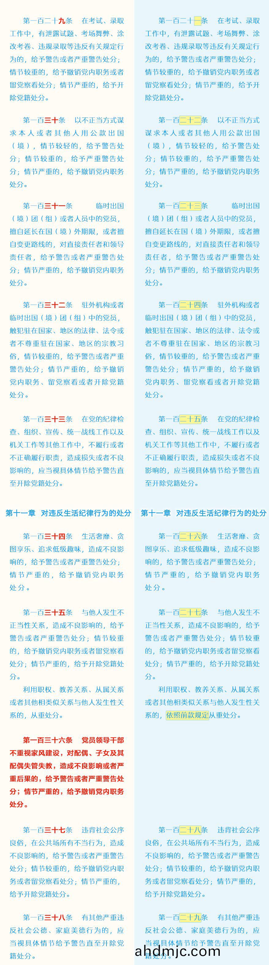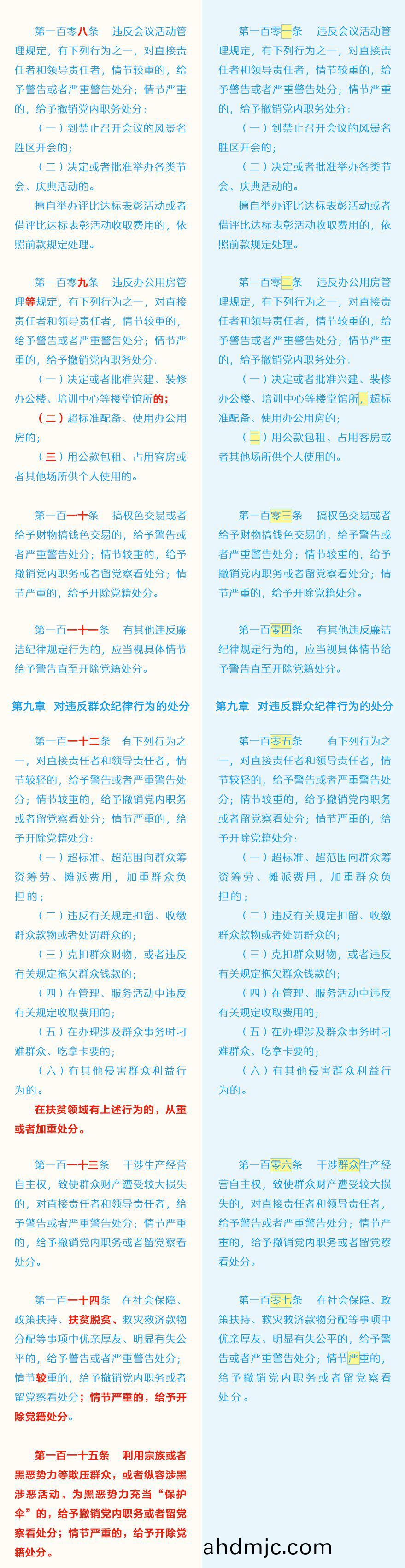 《中國共産黨紀律處分條例》脩訂前后最全對炤錶