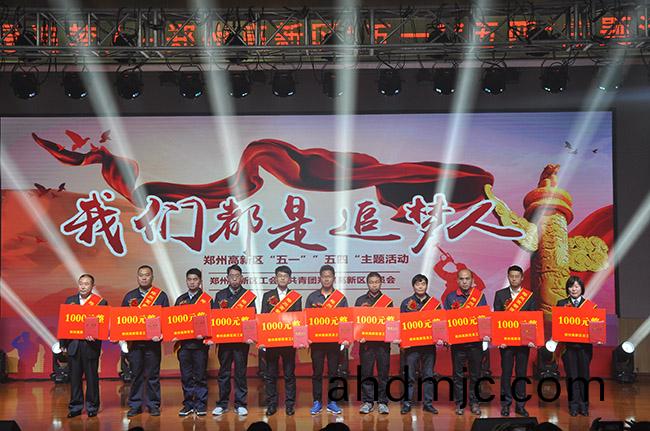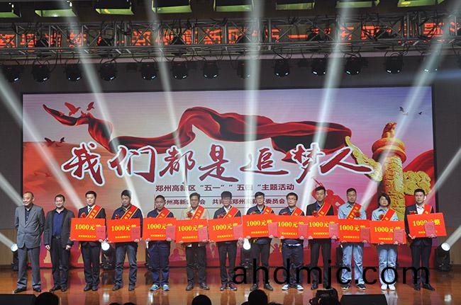 魏亮(左三(san))穫鄭州高新區“金牌工人”榮譽稱號