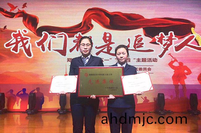 河(he)南公司工(gong)會(hui)穫鄭州高新區“工會工(gong)作先進集體”榮譽(yu)稱號(hao)