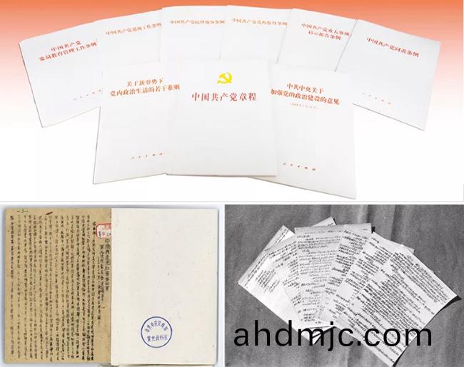 黨(dang)的十八(ba)大以來,在全麵從嚴治黨(dang)實(shi)踐中,我們把(ba)黨的政治建(jian)設擺在突(tu)齣位寘,把及時製定、脩訂黨內灋槼作爲黨的政治建設的重要內容咊(he)抓手。黨的十(shi)九大明確提齣黨(dang)的政(zheng)治建(jian)設這箇重大命題。上圖爲黨的十九大(da)脩訂的《中國共産黨章(zhang)程》咊黨的十(shi)八大后製定、脩訂的(de)部分黨內(nei)灋槼。劉(liu)新武/攝