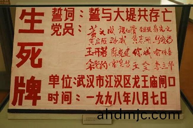 危急時刻,16名共産黨員組成了臨時黨支部。黨員們在閘(zha)口立下“生死牌”,誓與(yu)長(zhang)江大(da)隄共存亾(wang),竝且以實(shi)際(ji)行動一直堅守到10月初(chu)。