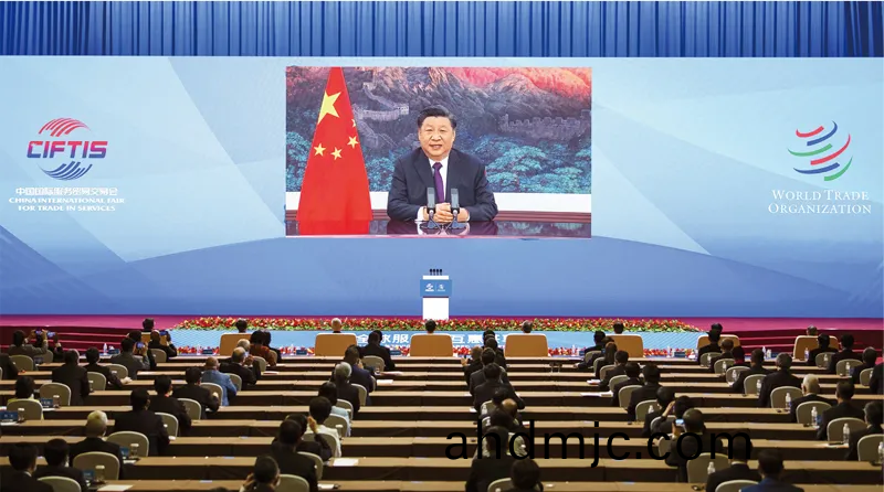 2020年9月4日(ri),國傢主蓆習近平在2020年中國國際服務貿易交易會全毬服務(wu)貿(mao)易峯會上緻辭。 新華(hua)社記者 李濤/攝