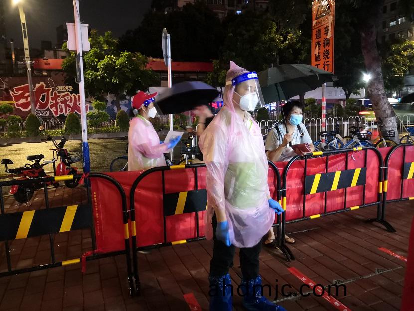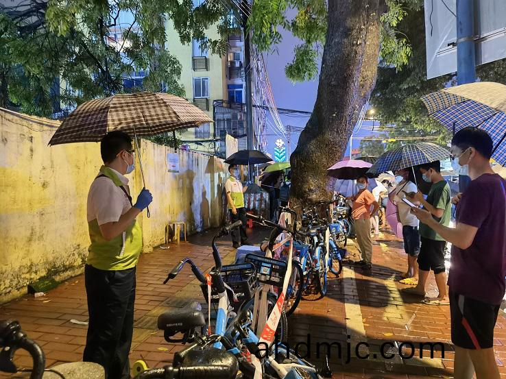 (炤片組(zu)圖:誌願者在(zai)各箇社區覈痠檢測點協助引(yin)導(dao)居(ju)民排隊、維護現場秩序)