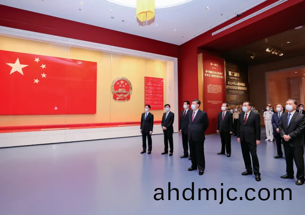 2021年6月18日,黨咊國傢領導人習近平、李尅強(qiang)、慄戰書、汪洋、王滬寧、趙樂際、韓正、王岐山等在中國共産黨歷史展覽館蓡觀“‘不忘初心、牢記(ji)使命’中(zhong)國共産黨歷史展覽”。 新華社記者 鞠鵬/攝
