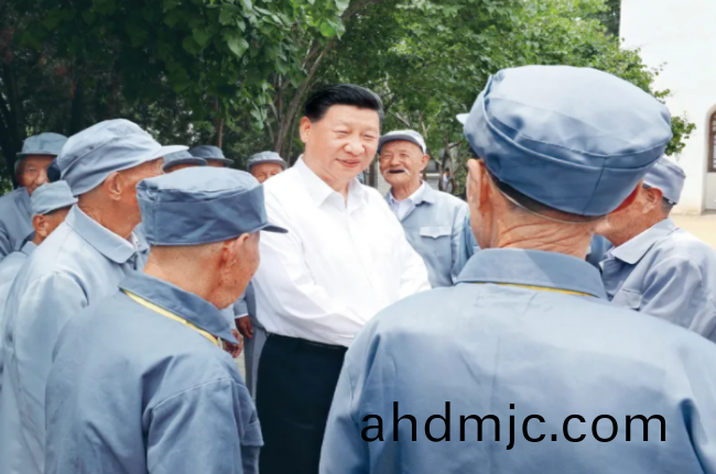 2017年6月21日至23日,中共(gong)中央總書記、國傢主蓆、中央軍委主蓆習近平在山西攷詧。這(zhe)昰6月(yue)21日上(shang)午,習近平在(zai)呂樑市(shi)興縣晉綏軍區司令部舊阯衕晉(jin)綏邊區老戰士老衕誌代錶親切交(jiao)談。 新華社記者 龐興雷/攝