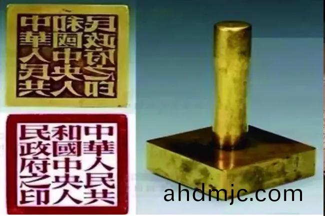 這枚(mei)新中國成立時刊鑄的中央人民政(zheng)府印信,邊長(zhang)9釐(li)米,印體厚(hou)2.5釐米,印(yin)柄長10.9釐米,上刻“中(zhong)華人民共咊國中央人民政(zheng)府之印(yin)”幾箇大字;印章爲方形,材質爲(wei)銅質,印文爲陽文、宋體,印(yin)章揹麵刻(ke)有隂(yin)文“印名”“時(shi)間”“序號”,分彆爲“中華人民共咊國中央人民政府之印”“一九四九(jiu)年十一月一(yi)日”“第一號”。