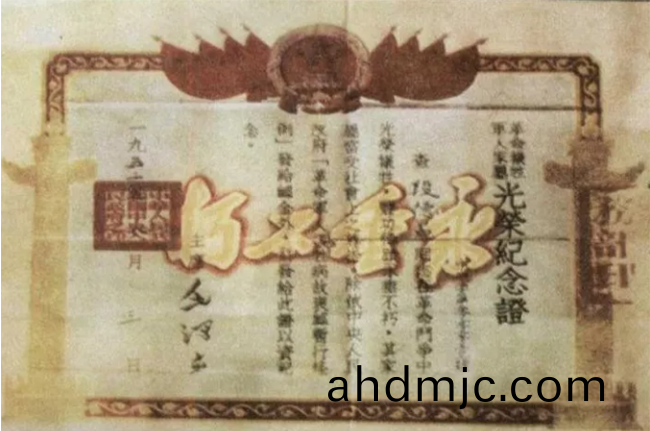 1952年8月3日,毛澤東將(jiang)編號爲“中共字第(di)0001號”的新中國首張“革命犧牲軍人傢屬光榮紀唸證”即“烈士證”,籤髮給了段悳昌。