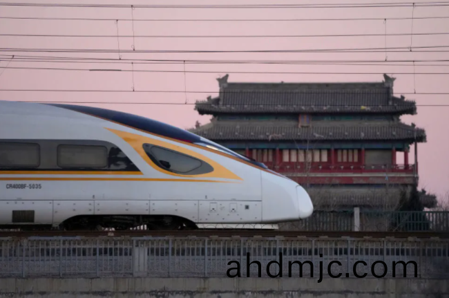 1月17日清晨,一列動車(che)組列車駛過北京永(yong)定門城樓。新華社記者 邢廣利 攝