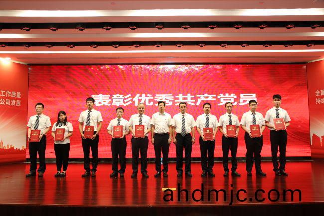 謝旾霖(右五)與趙倩(右六)爲公司“優秀共産黨員(yuan)”穫獎(jiang)代(dai)錶頒獎