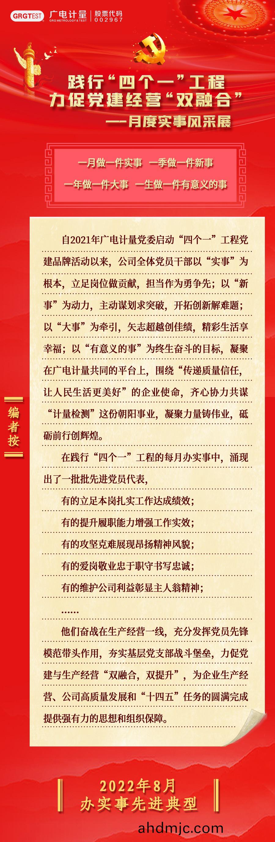 8月實事(shi)風採展丨踐行“四箇一”工(gong)程 力促黨建經(jing)營“雙(shuang)螎郃”